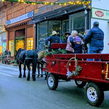 We offer public wagon rides with a variety of wagons for Weddings, Tours, Christmas caroling, Parades and Parties. Ride with us at the Georgetown Colorado Christmas Market this December.
